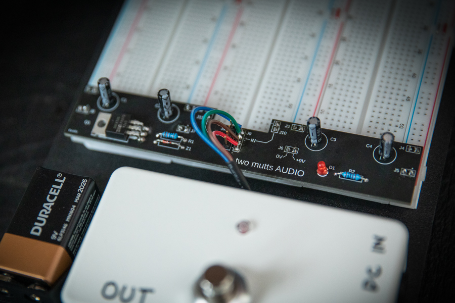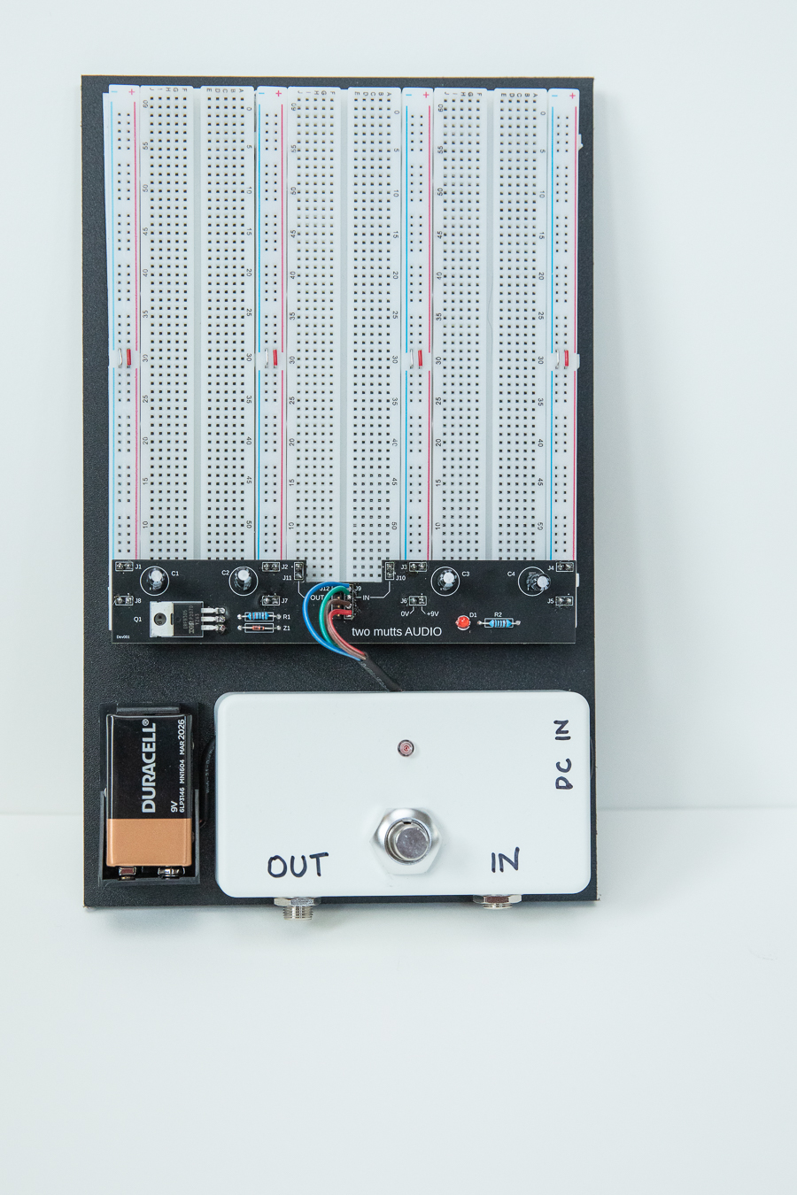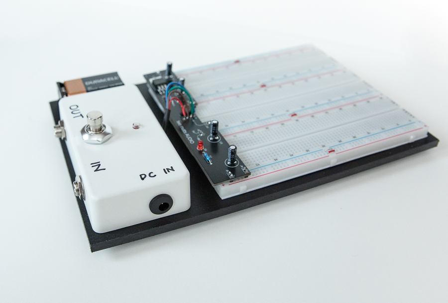 The PCB ensures a solid connection to route power and audio onto the breadboards, and has a simple reverse voltage protection circuit, so I won’t fry the whole thing one late night changing the battery!