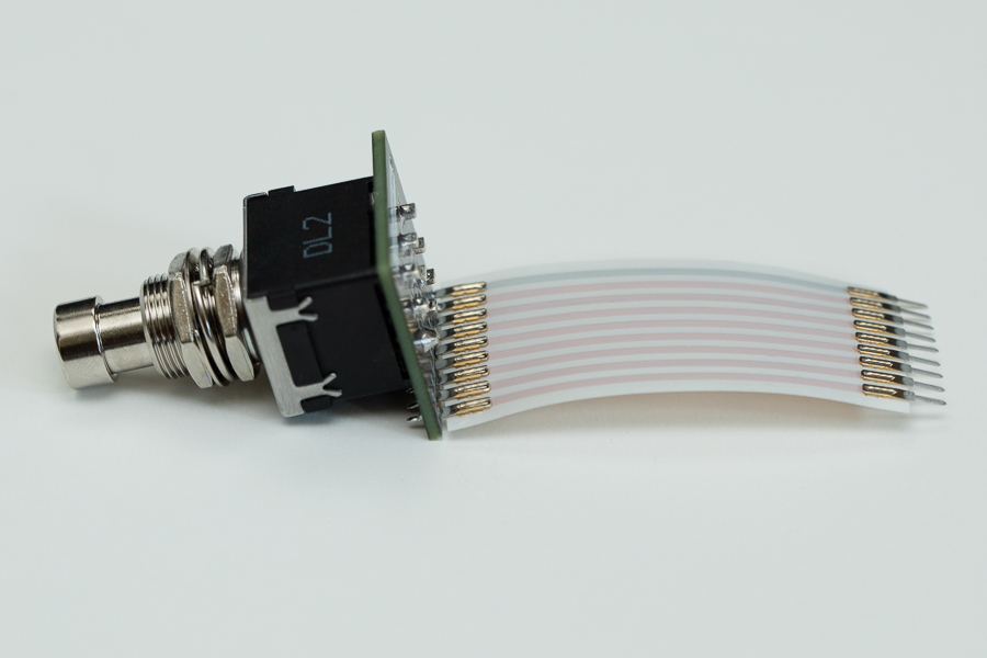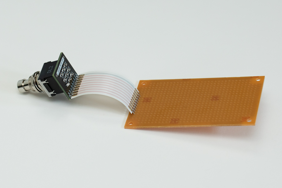 The flexible cable enables a short connection to your own PCB or Veroboard, which can sit at a different level than the footswitch PCB. It is very flexible – but note it is not intended for moving applications!