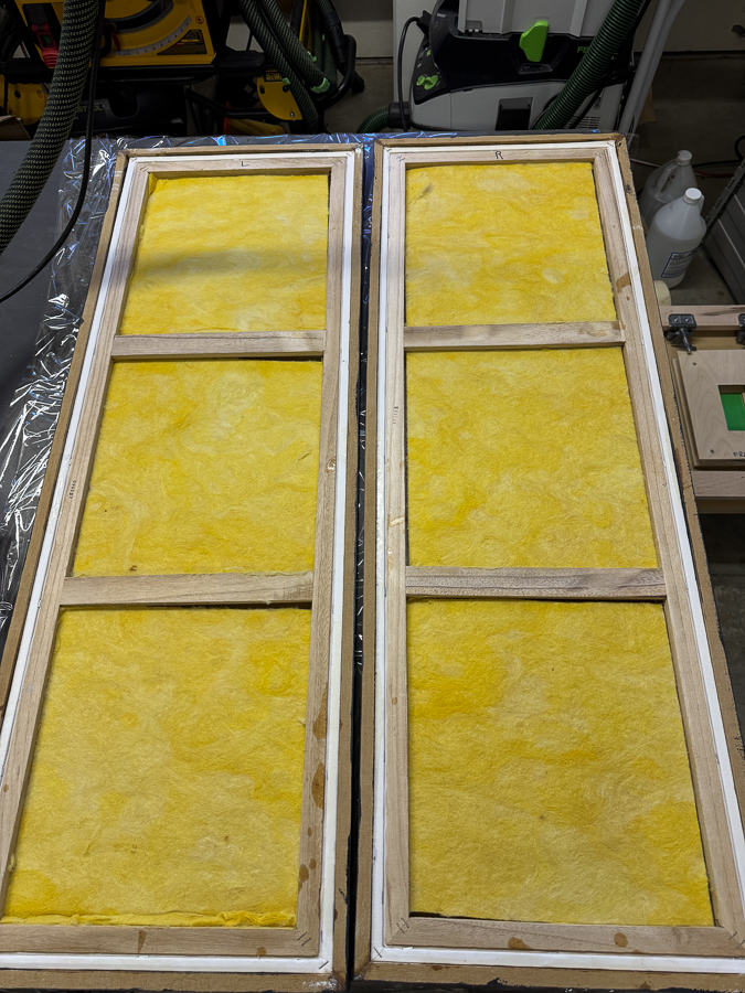 Some comments on other options… First, my panels ended up being about 1 1/4″ deep. There’s nothing stopping you using similar 1″ canvas prints, and building a deeper frame, and filling that with thicker fiberboard, for more bass absorption. Also, you can use something called mass loaded vinyl as well as the ply. It’s meant for construction, but heh…