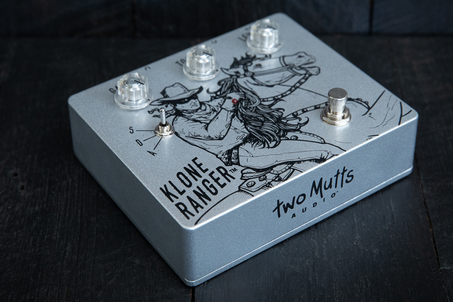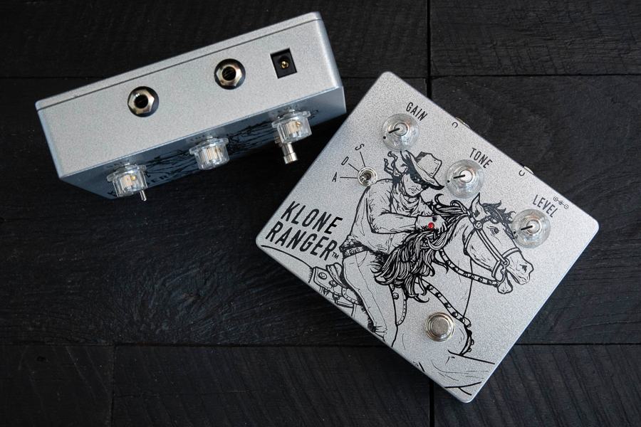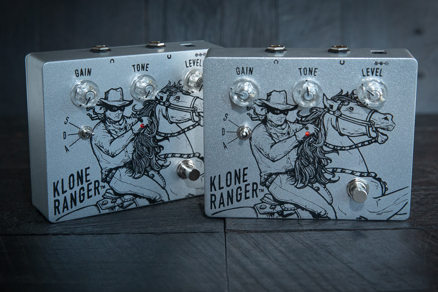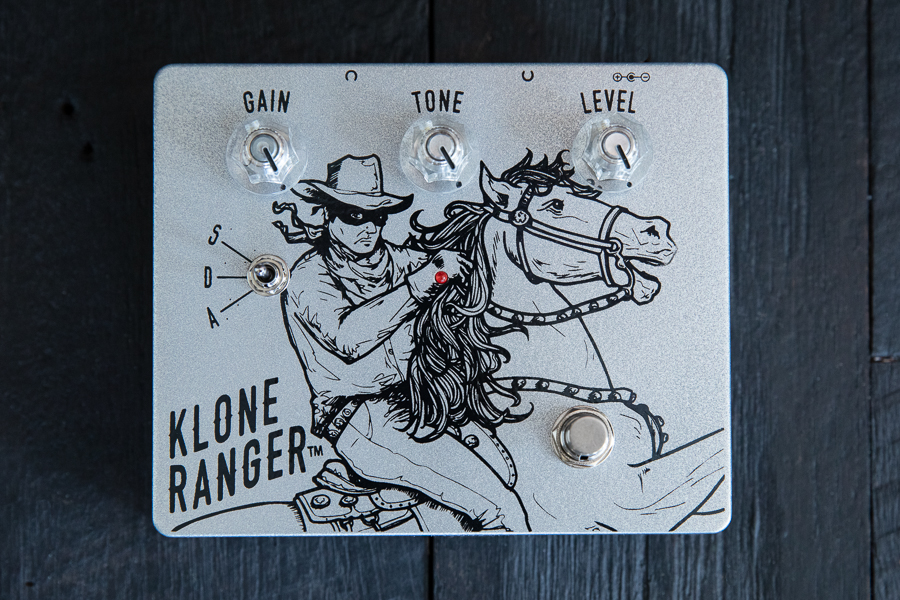 Klone Ranger has the familiar overdrive control pots – Gain, Tone and Level – to which we have added an additional toggle switch to select one of three clipping circuits, labeled S, D and A.